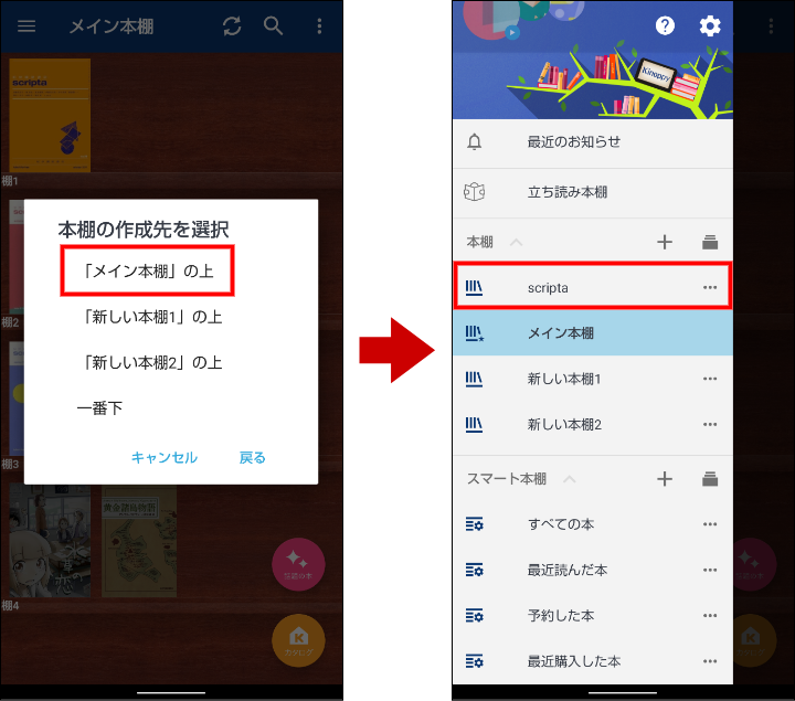 指定した場所に本棚が作成され、シリーズの本がまとめられます。