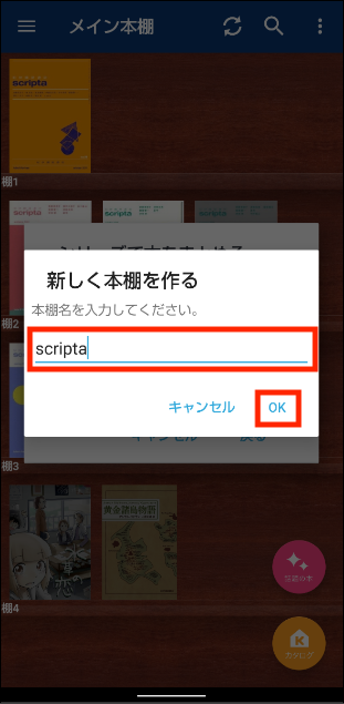 5. 本棚名を入力し「OK」ボタンをタップします。