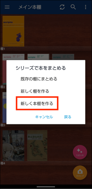4. 「新しく本棚を作る」をタップします。