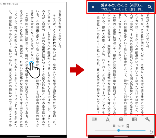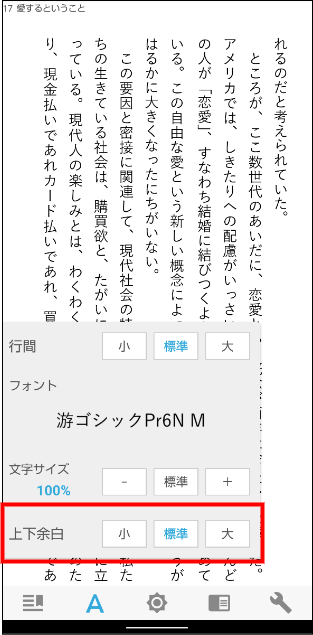 A.次の手順で設定できます。ただしEPUB形式のリフロー型の本のみとなります。※この機能は、バージョン3.13.0からご利用いただけます。