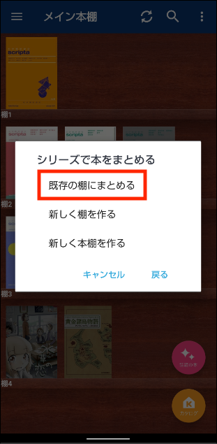 4. 「既存の棚にまとめる」ボタンをタップします。