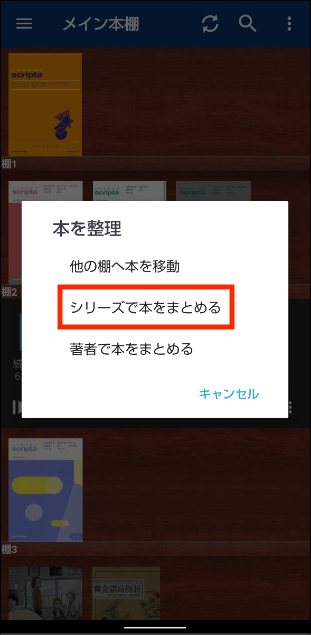 1. まとめたいシリーズの本1冊をタップして操作パネルを開きます。