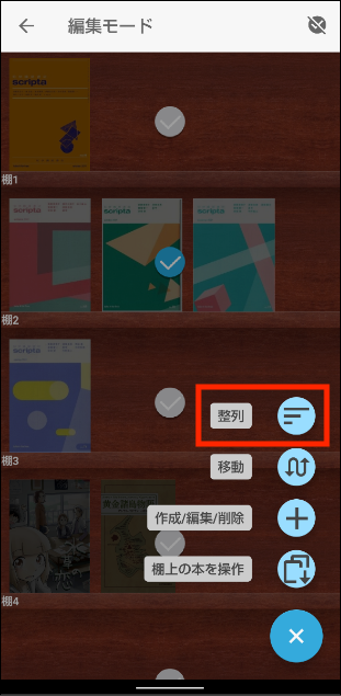 2. 整列させたい棚をタップして選択後、右下のメニューボタンをタップします。