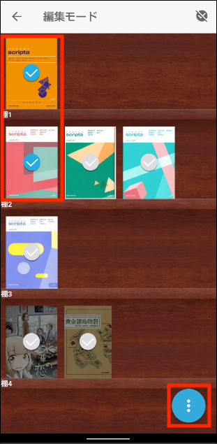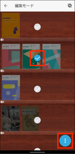 2. 新しい棚に乗せたい本を選択し、右下のメニューボタンをタップします。