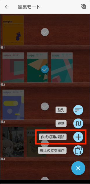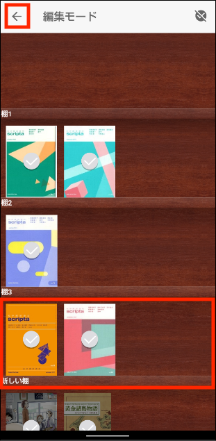 7. 指定した場所に、選択した本を乗せた棚が作成されます。左上の「←」ボタンをタップして編集モードを終了します。