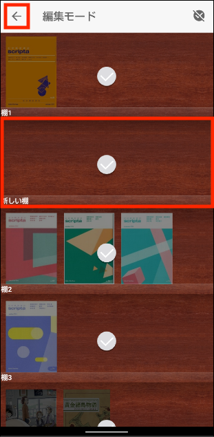5. 新しい棚が選択した棚の上に追加されます。左上の「←」ボタンをタップして編集モードを終了します。