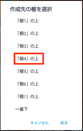 6. 本棚内のどの位置に棚を作成するかを選択する画面にて、棚を選択します。