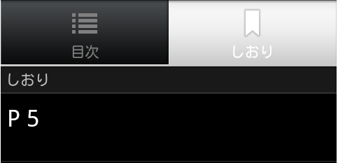 追加したしおりは、メニューの[目次/マーク]ボタンをタップして開くツールウィンドウの[しおり]タブで確認できます。
